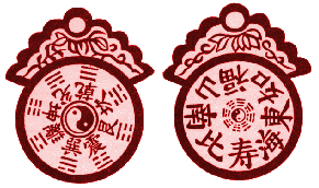 6. An amulet with the eight trigrams with an inscription `May you have good fortune like the Eastern Ocean and long life like the mountain of the South':-