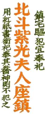 3.1 This charm is used to protect a house against evil influences. It is written on red paper and stick on a wall:-